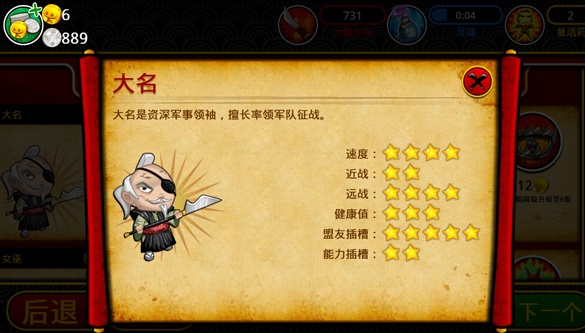 2、大名是资深的将军角色,拥有更快的攻击速度与攻击力。