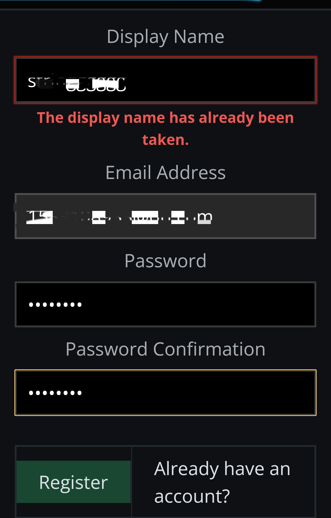 2、此时游戏将会跳转到账号的注册页面,玩家依次填入账号名称、邮箱、密码后即可完成注册。