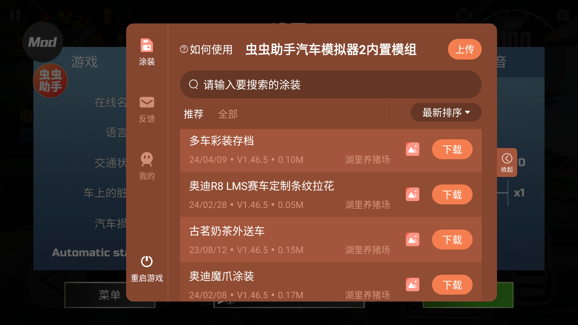 玩家进入游戏后点击左上角按钮后即可进入到模组选择菜单中,根据喜好与需求自由选择你的模组。