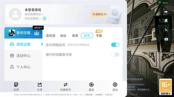 1、云游戏的画质设定不再是在游戏内,而是在云游戏悬浮球中,自由的设置画质哦。