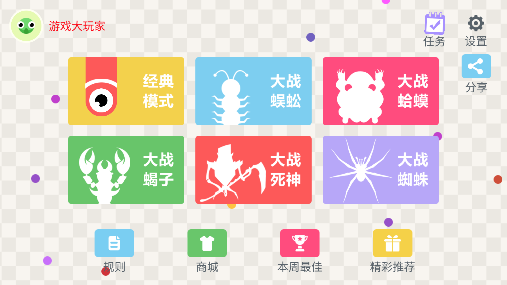1、进入游戏后玩家能够选择五毒一共五个模式进行自由体验。