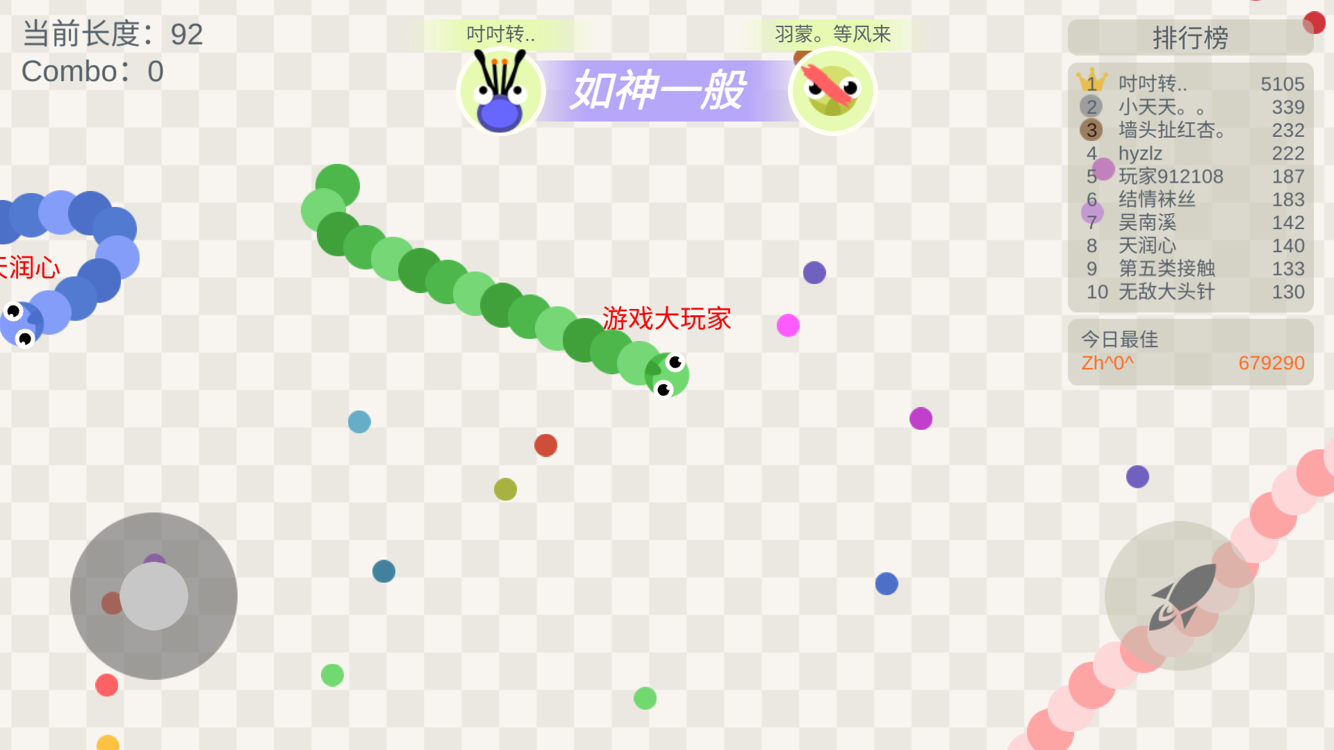 使用技能包围敌人,利用遥感和技能键创造丰富多样的策略!我是一条身体轻盈的小蛇,我可以使用技能智能加速和反击!