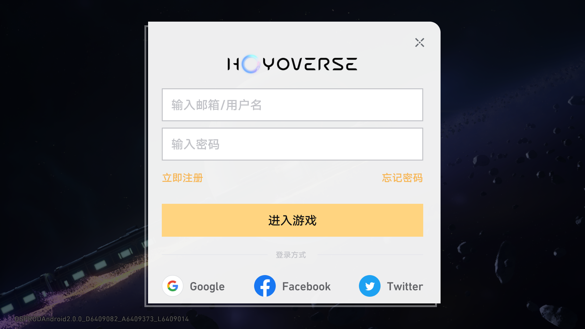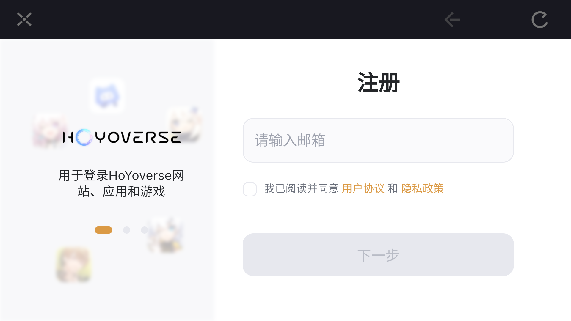 1、进入游戏后可以直接使用米哈游账号进行登录,国服注册账号一样使用非常便捷,以下是快速注册方式。