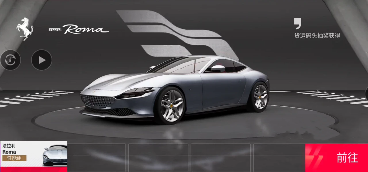 法拉利家的roma,一款非常不错的极限组高性能赛车。其车辆的数据面板非常的优秀,而且造型非常具有流线十分好看,通过码头抽奖即可获取。起步从零跑到100公里每小时用时大概在六秒左右,不算特别快,但也算一流。