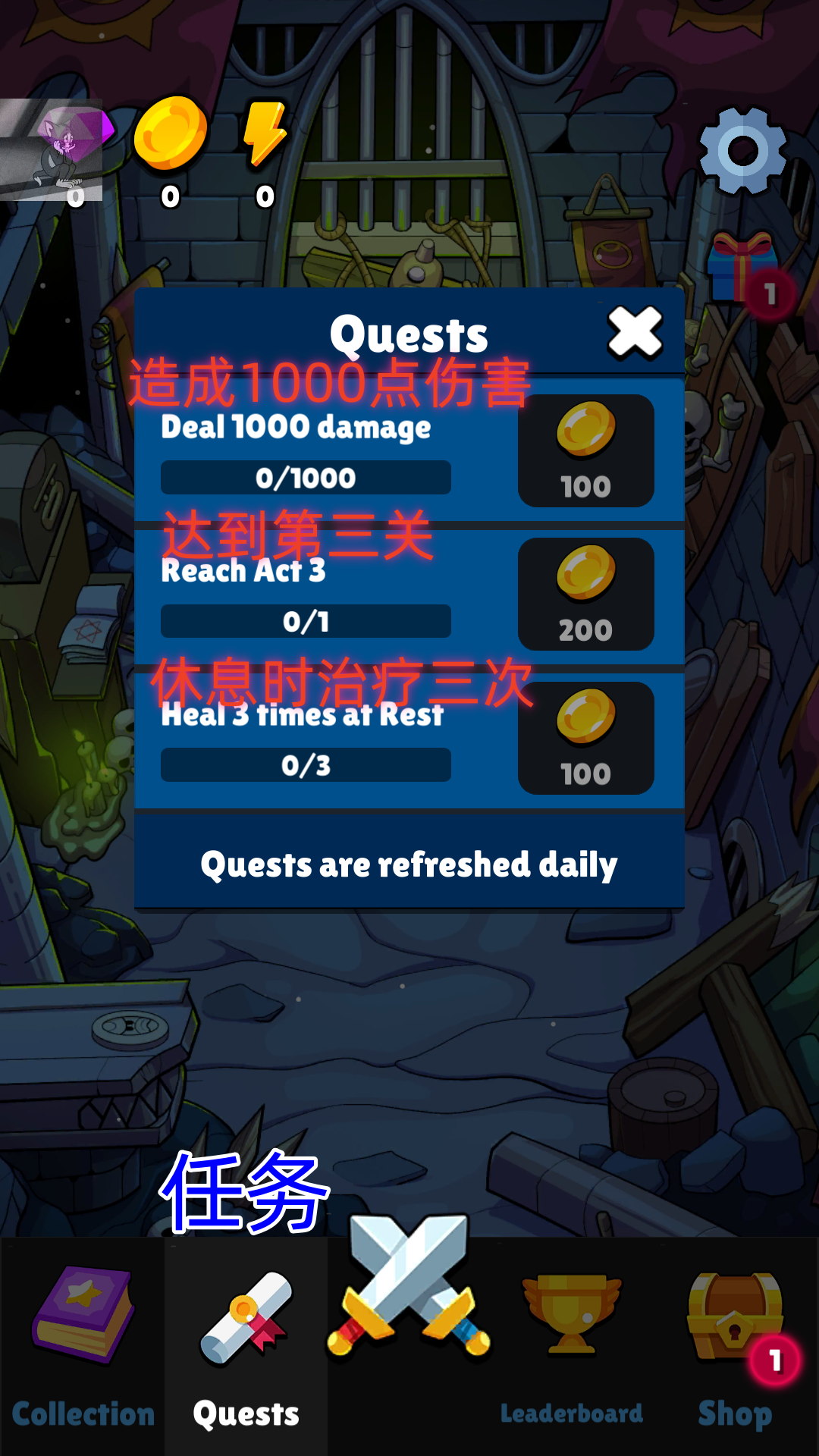 1、玩家在开始游玩之前需要注意当前的每日任务,完成后有丰厚的金币奖励可以领取。