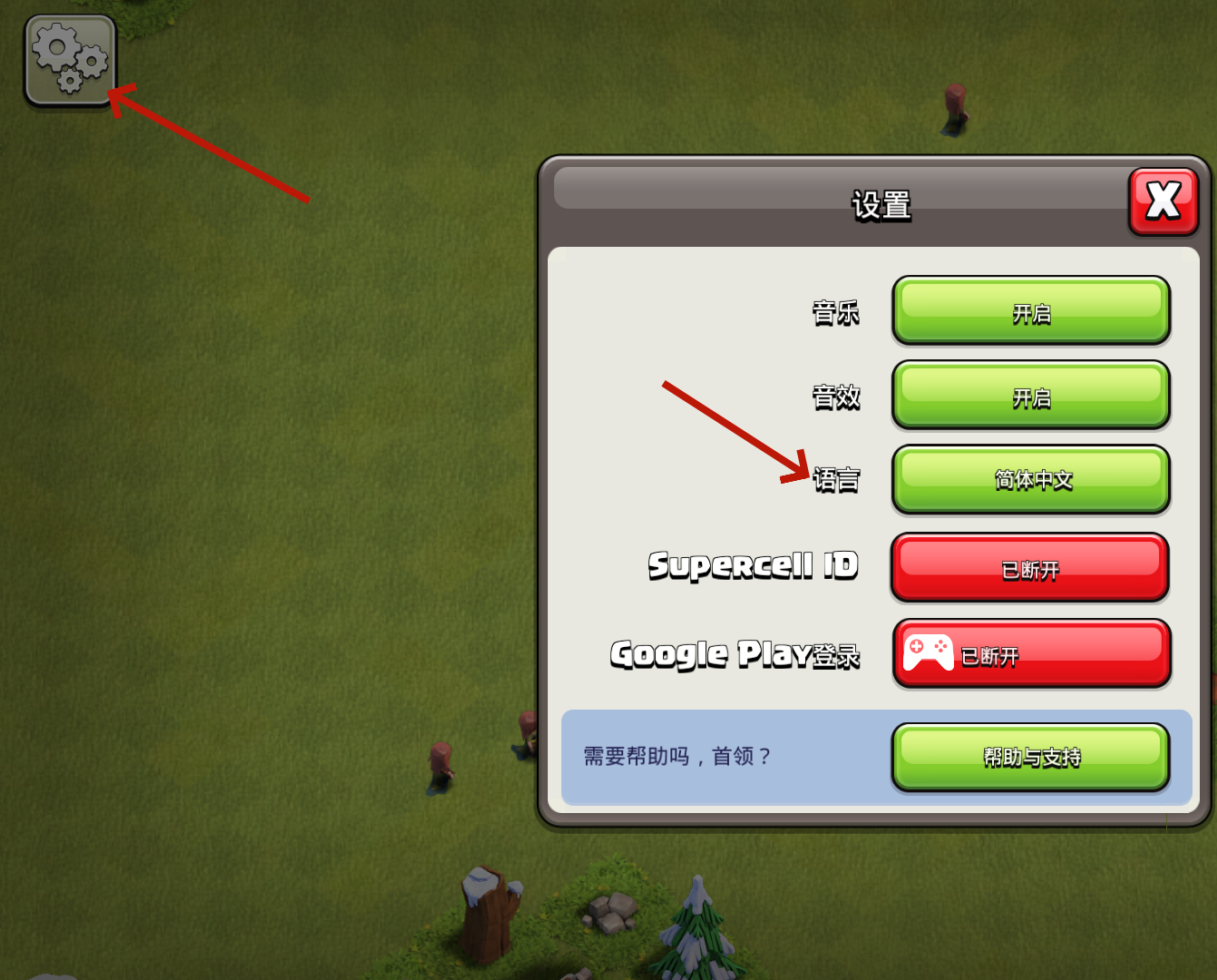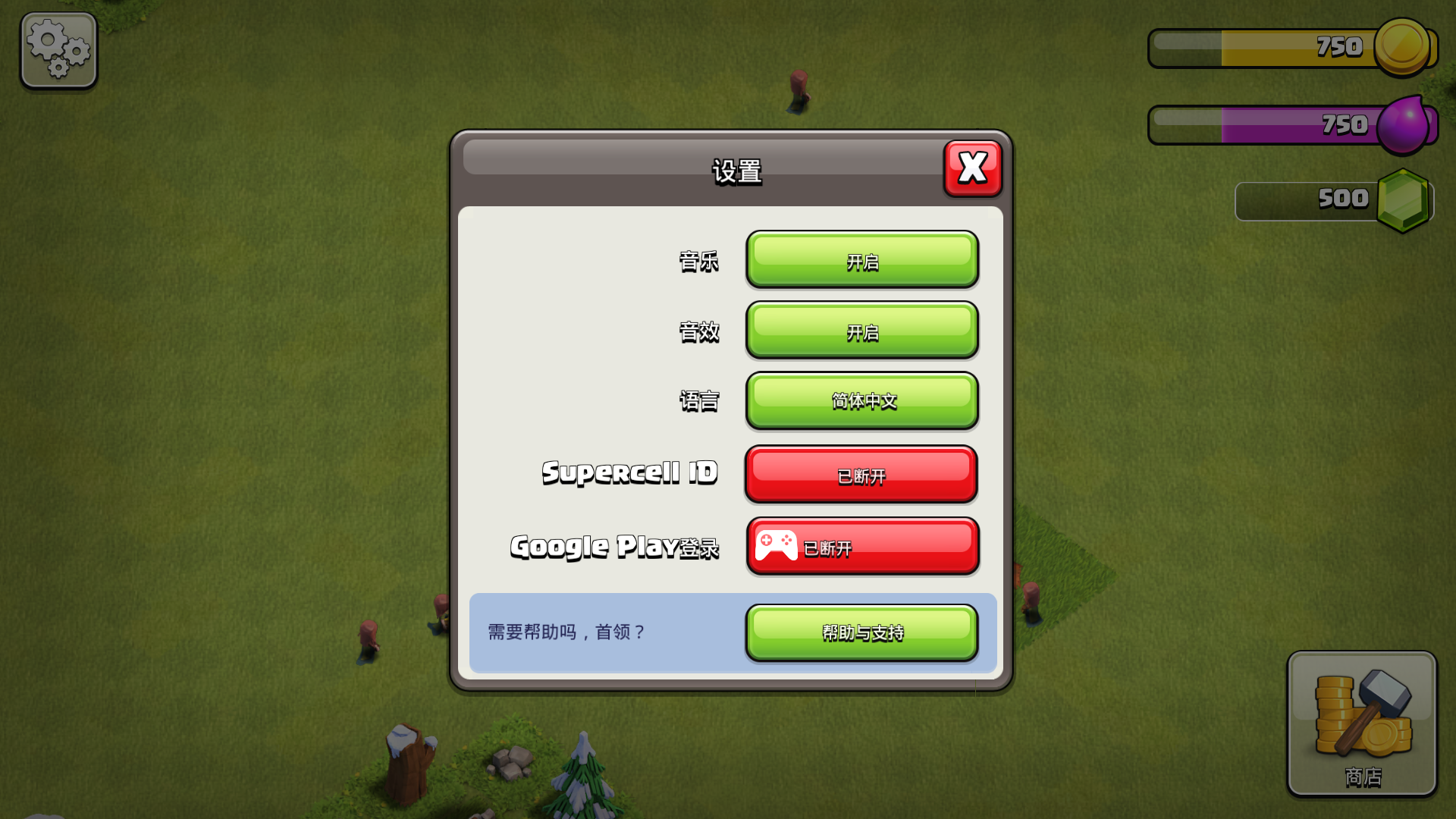2、曾经有国际服账号玩家回归的话,需要在“设置”-“Supercell ID”或“GooglePlay”账号进行登录。