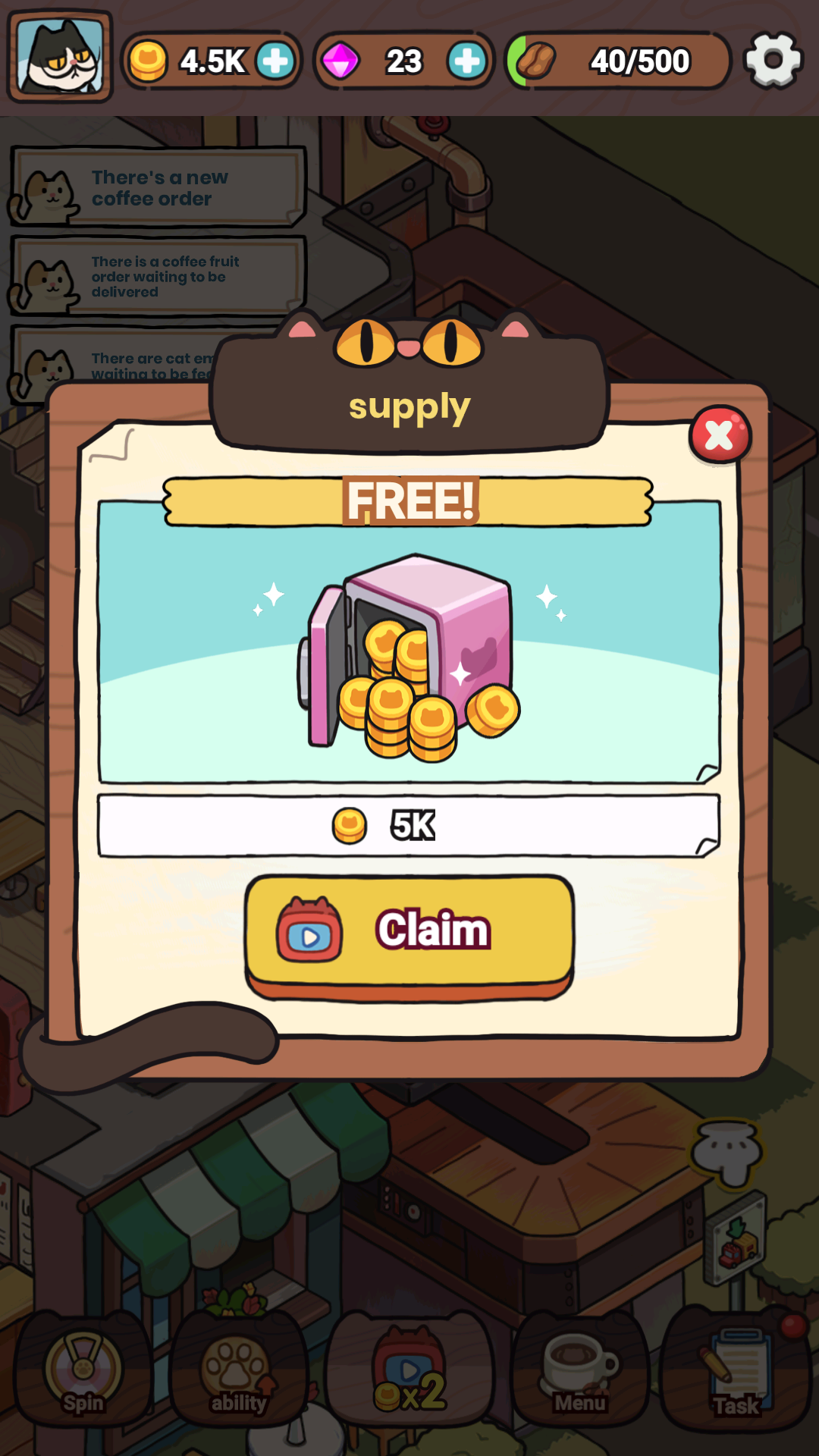 2、猫咪的种类可以通过升级的方式来解锁,能够提供更多的咖啡给予等待的客人。