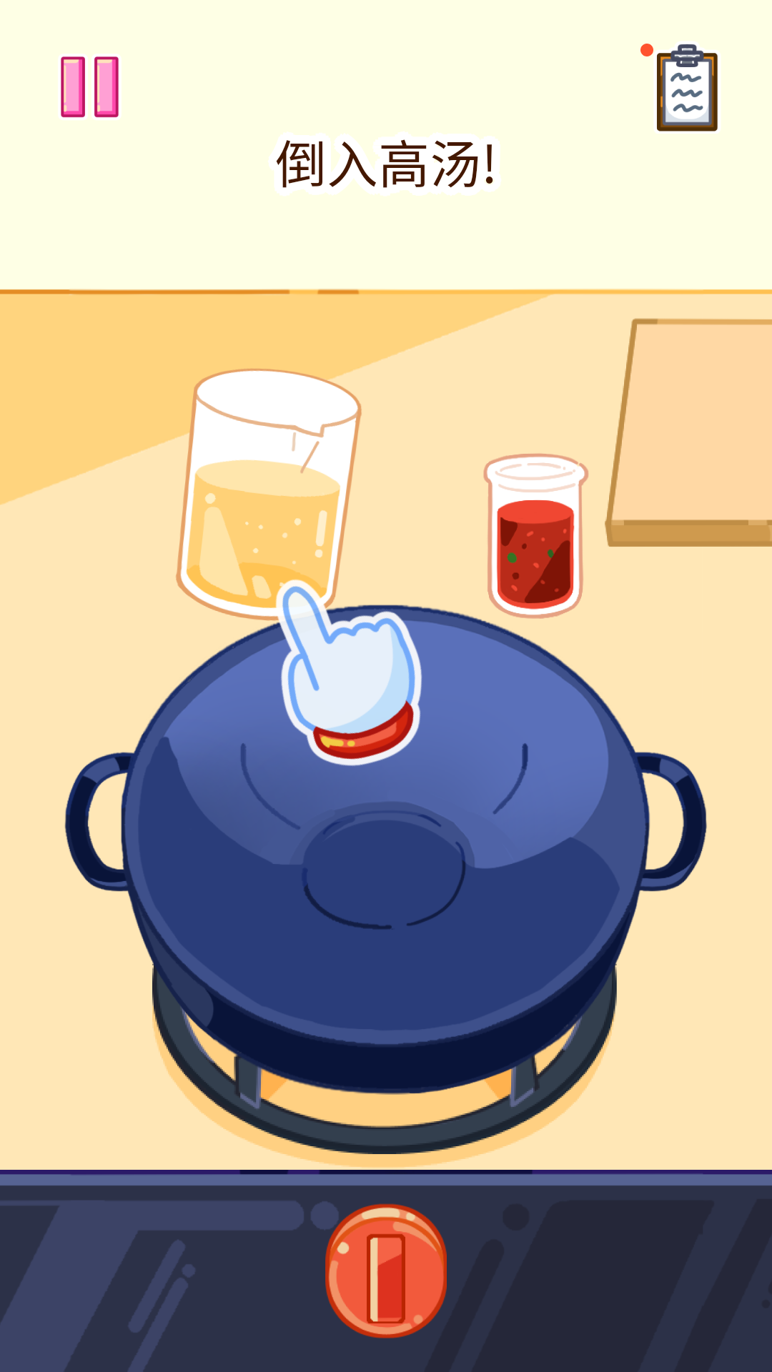 2、此时我们需要根据提示来倒入不同的麻辣烫食材,并且注意订单中的口味相关需求。