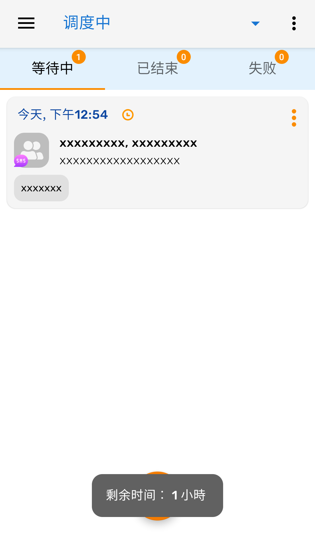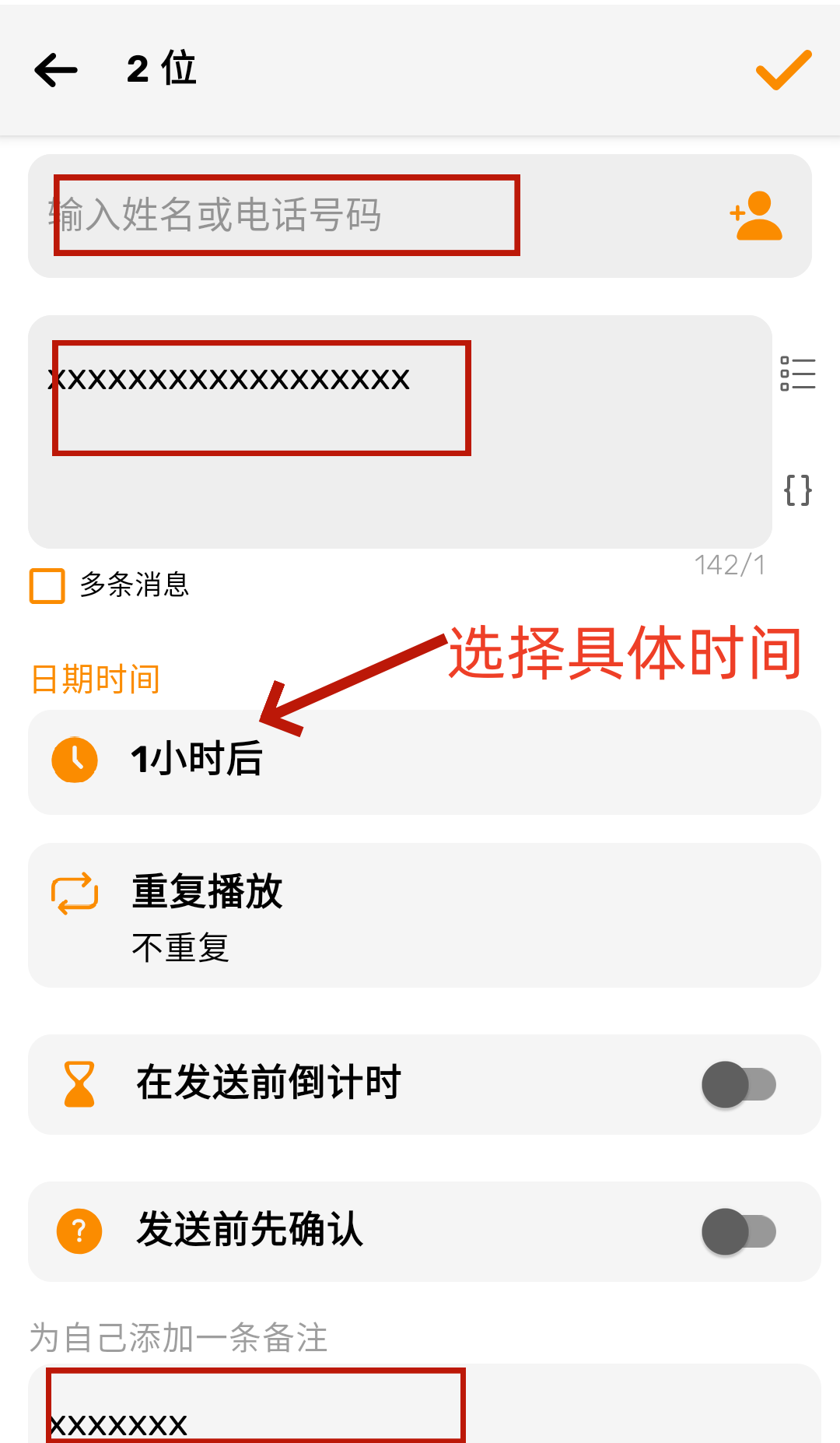 3、我们以短信为例,填入详细的信息后调整所需时间即可。