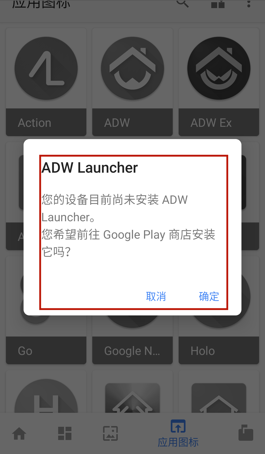 用户想要正常使用需要提供“ADW Launcher”框架才能顺利获取图标。