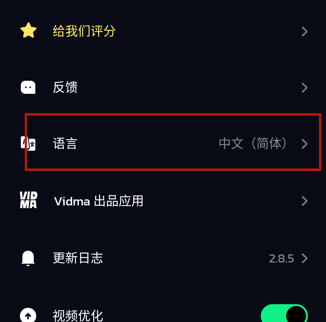 2、在设置按钮中找到语言按钮,往下翻到底就能看到中文选择了。