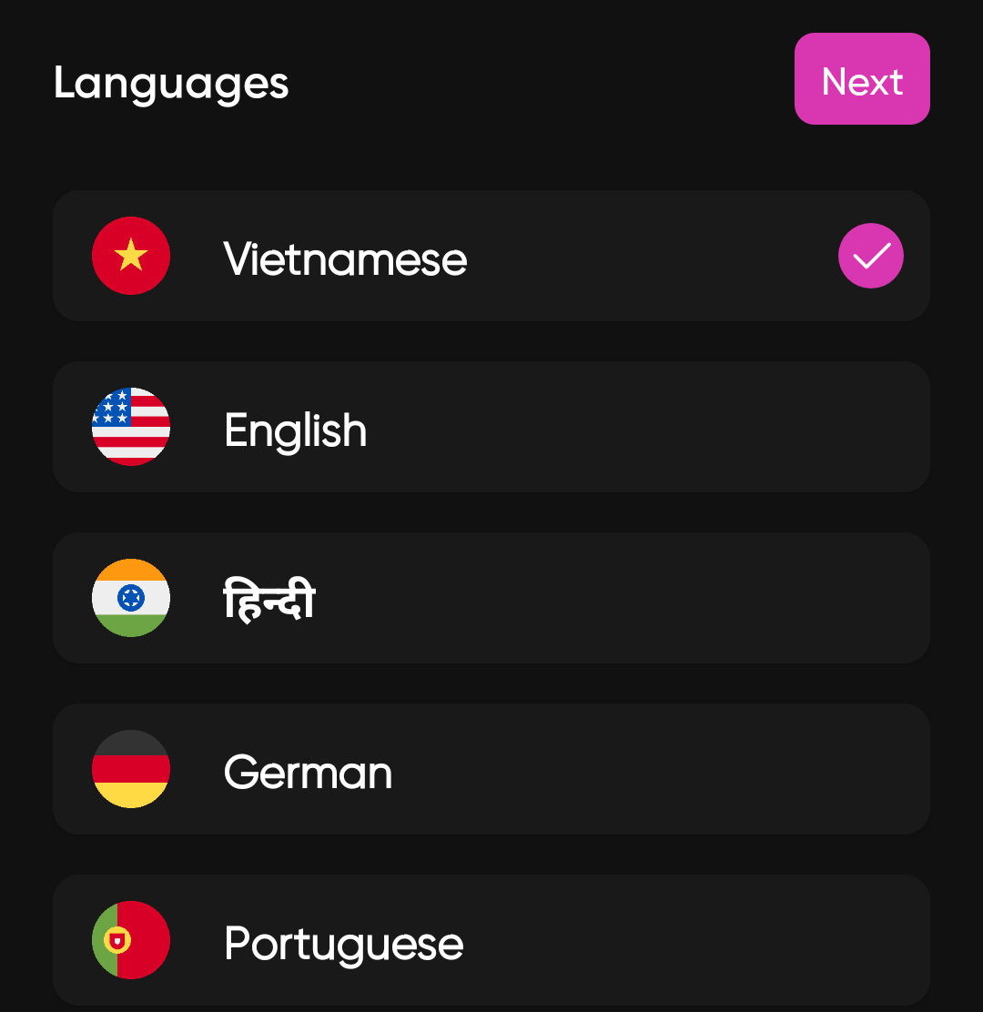 1、用户在第一次使用软件时会提醒语言相关设置,在次界面随意选择一个语言即可。