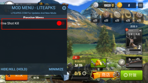 3、MOD版本内能够使用菜单功能完成不同的需求,享受最棒的狩猎游戏过程。