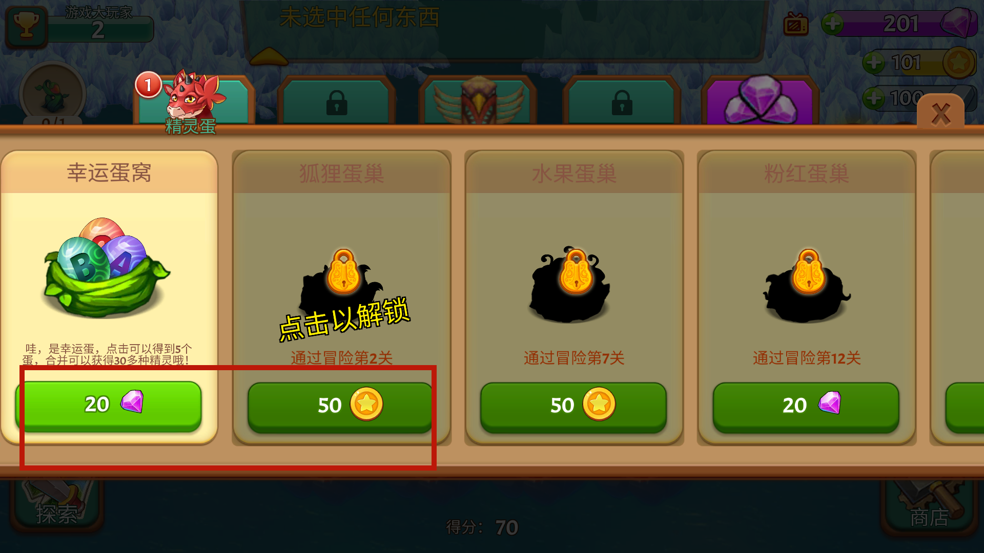 2、可以无限制的点击来完成恐龙蛋的升级,并且可以看到钻石使用后不减反增。