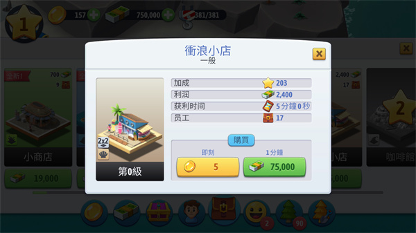 2、除了简单的居民楼外,各种小店铺也能够提供大量的金币收益。