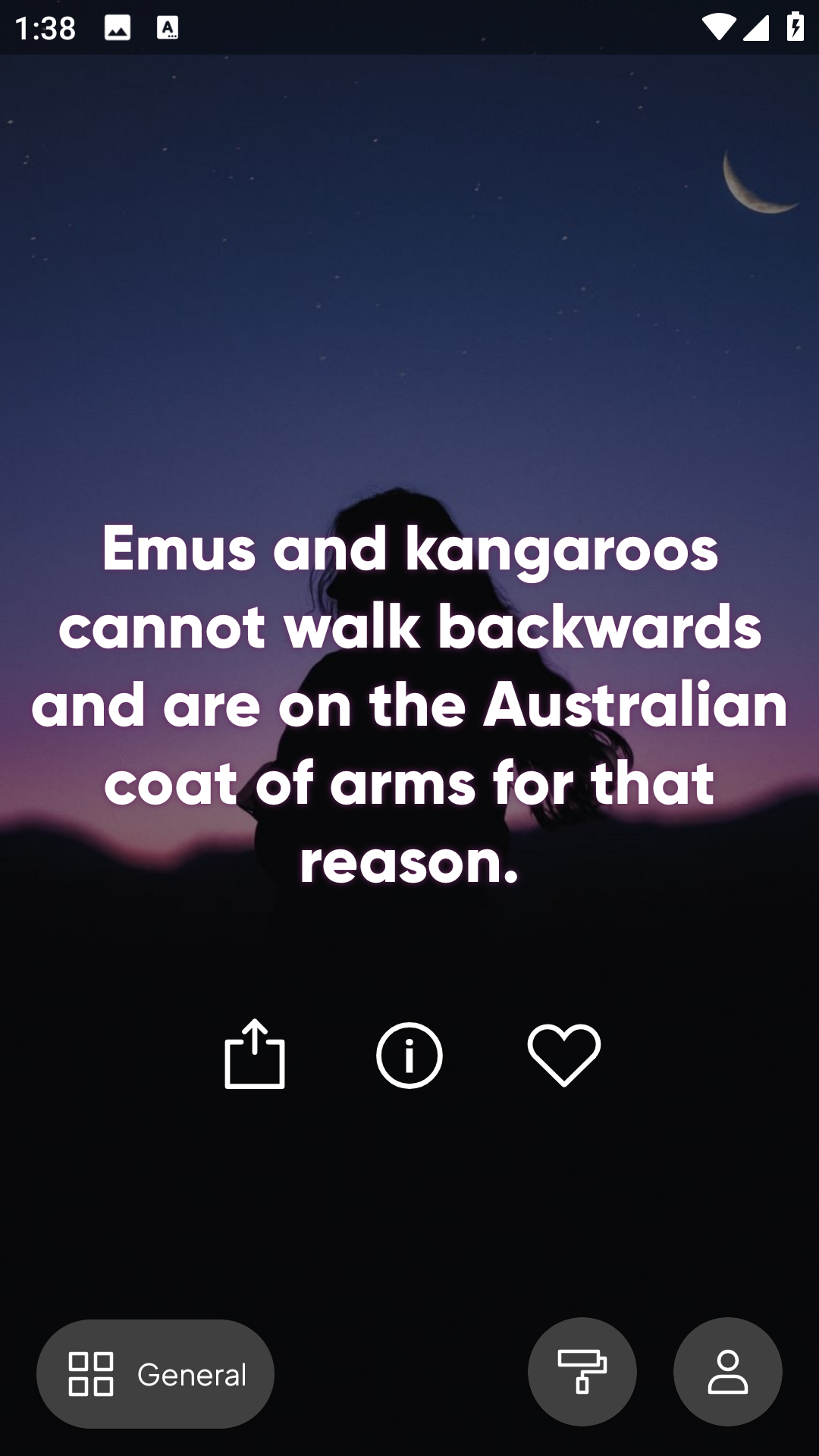 你想要在每日打开手机就学习到知识吗?想要每日手机来督促你进行学习吗?在每日每日随机事实(Daily Random Facts)app中就能够让你得到帮助,用户能够在软件中自由设定你的时间来完成每日的学习任务。根据用户对于学习科目的不同将会出现各种有趣的小知识,在寓教于乐的氛围中不断地吸取知识来充实自己,完全免费且无广告软件环境中,只需要手指的滑动就能够让知识不断地进行切换,所有看过的小知识都不会再重复出现非常的人性化,在简洁的软件中享受最棒的知识汲取服务。