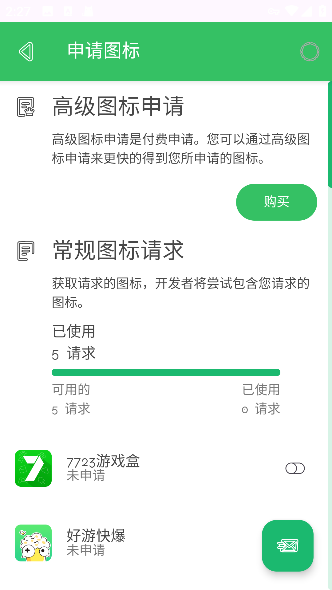 1、每日能够申请一共5个不同的图标进行使用,部分精品还能够进行留存。