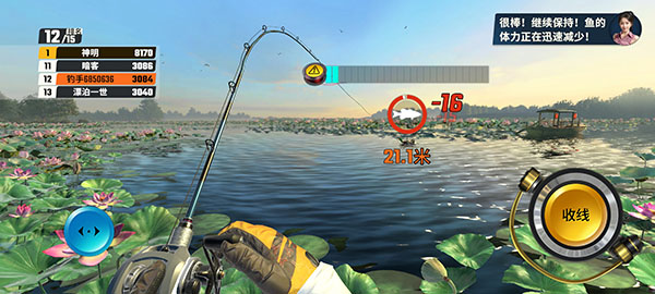 1、游戏中加持了真实的虚拟重力识别系统,玩家可以通过甩手机来实现游戏中的甩竿操作。