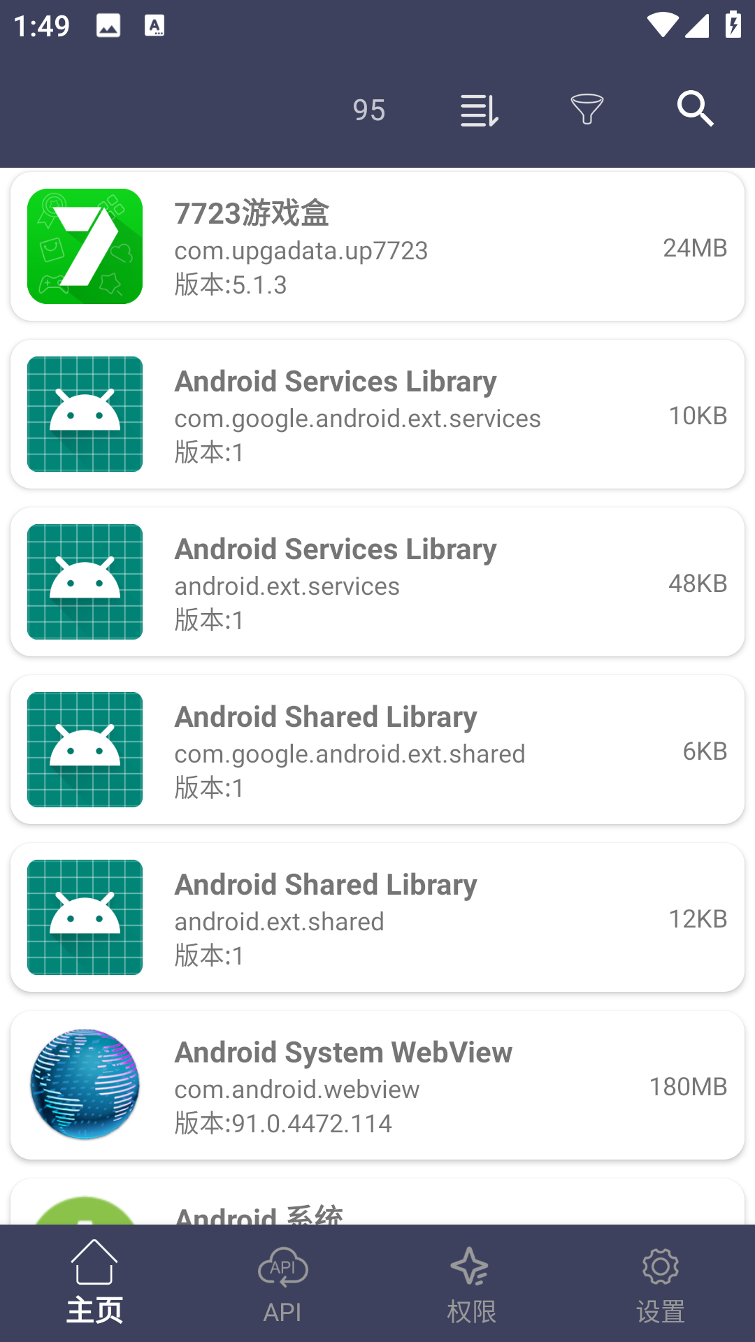 1、在软件的主页面中可以看到当前手机内的所有应用相关信息。