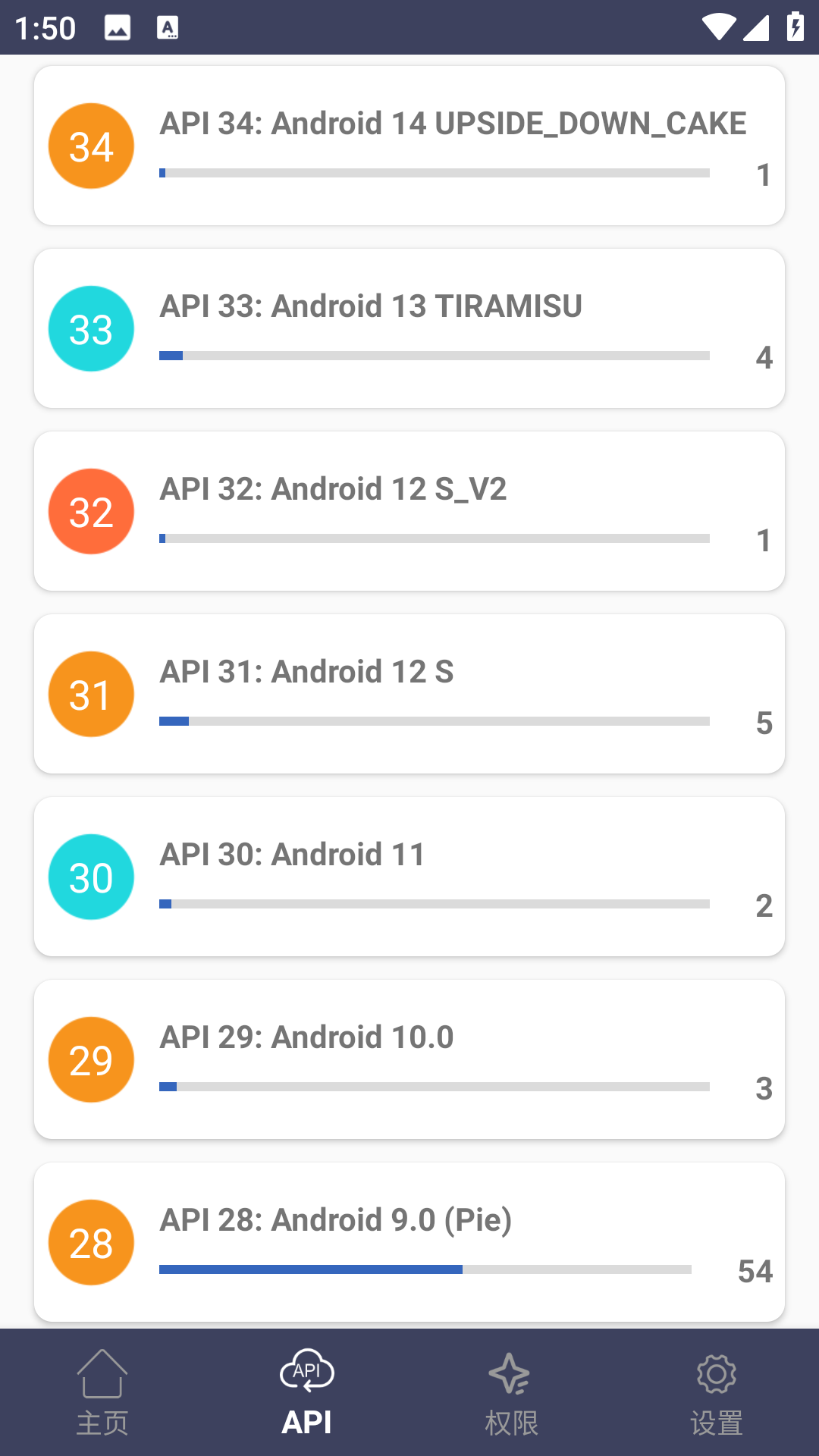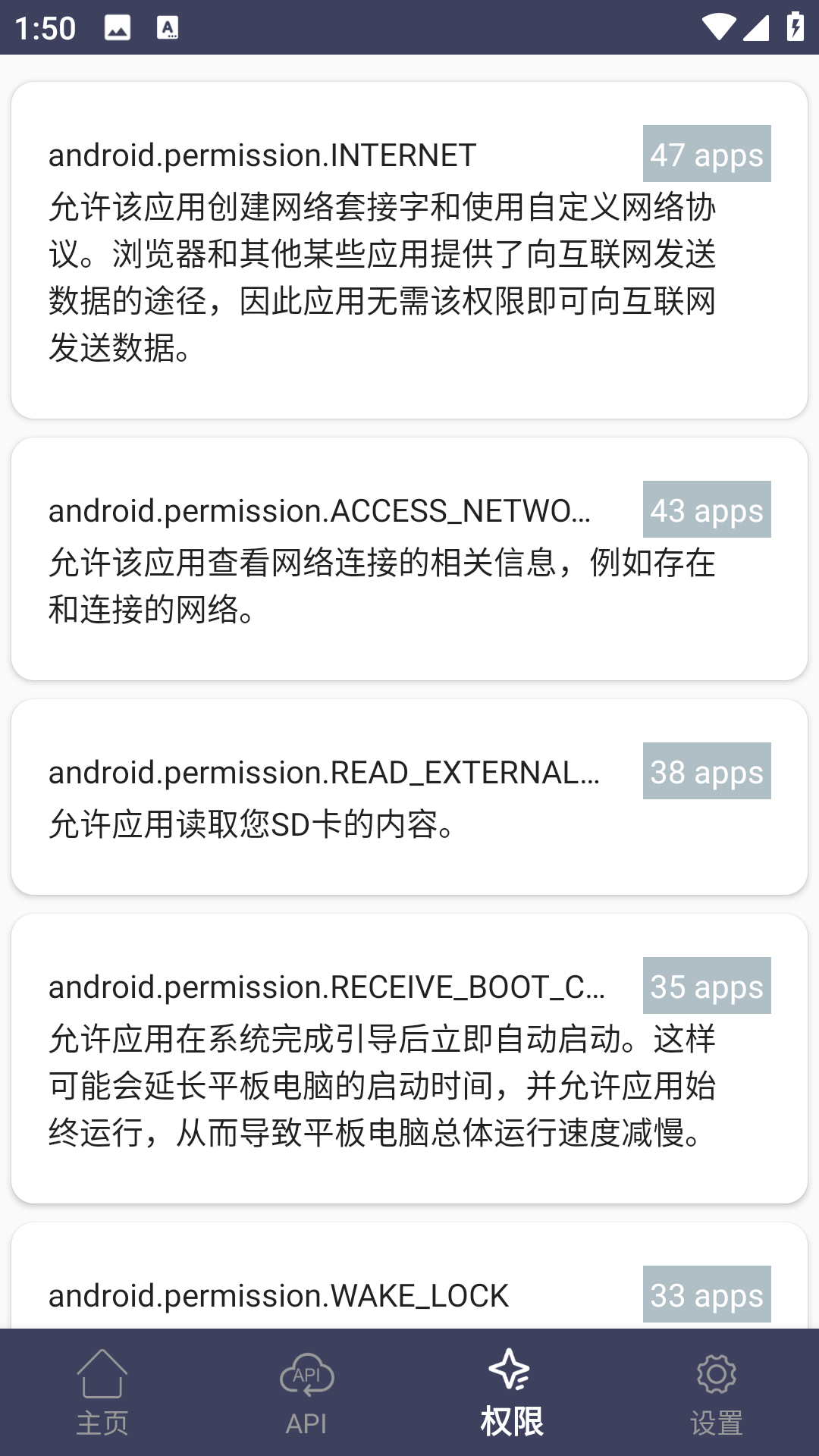 4、点击权限按钮可以看到每一个权限下有多少个应用正在使用!