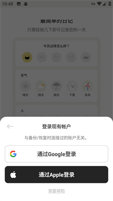 1、目前软件只提供了Google账号与苹果账号两个登陆方式。