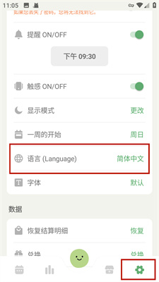 1、进入到软件主页面中,点击右下角的设置按钮,并找到语言设置。