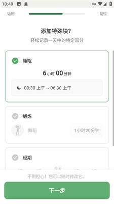 2、关于时间的记录都可以进行选择,并且每日将会适时提醒用户。