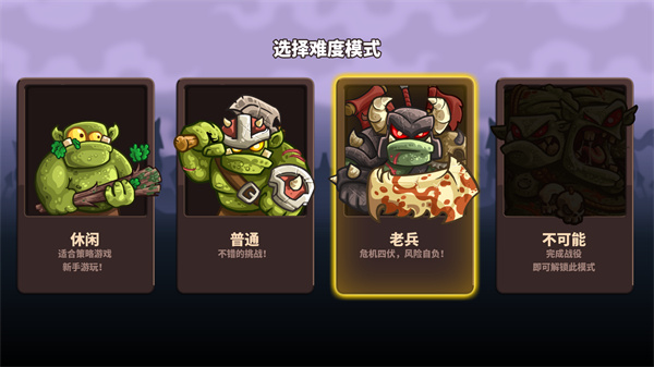 2、一共四种不同的关卡难度可以自由的挑选,会影响到最终通关奖励。