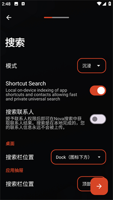 nova设置快捷方式和联系人搜索API集成,以扩展搜索功能。