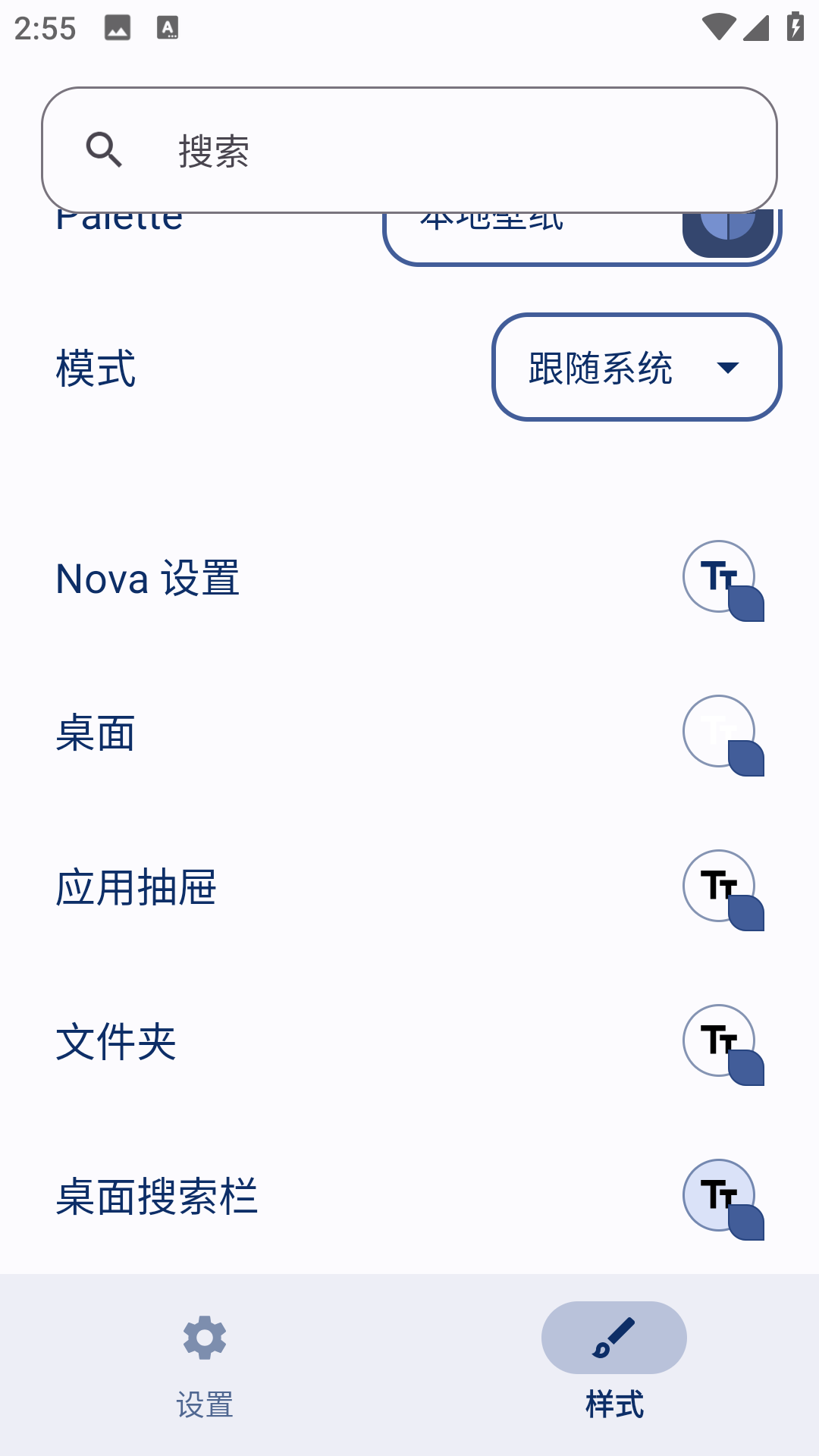 3、在这里可以从壁纸、样式、桌面、文件夹等不同方面来更改设定。