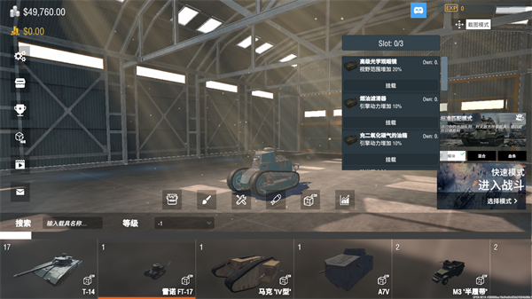 1、游戏针对每一个坦克都提供了自由的改装模式可以体验。