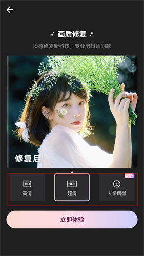 3、我们以超清画质为例,点击体验后即可自动修复你的画质哦。