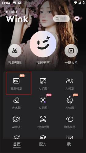 1、在主页面中找到画质修复的相关功能,并点击进入其中。