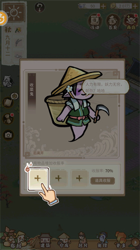 1、在玩家的田地周围将会随机出现不同功能的妖怪。