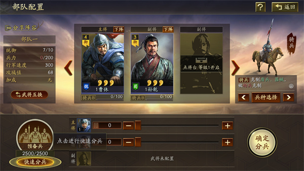 1、武将的属性与等级将会决定其带兵的数量与能力。