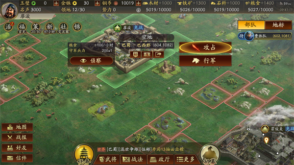 2、尽量招募更多的武将来组成队伍进行四面八方的扩张。