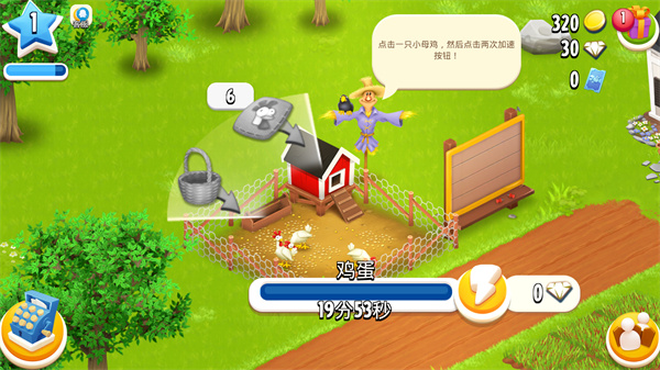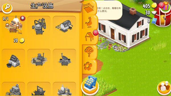 2、玩家能够选择不同的建筑放置在你的农场内,并且可以使用钻石进行快速的建造。