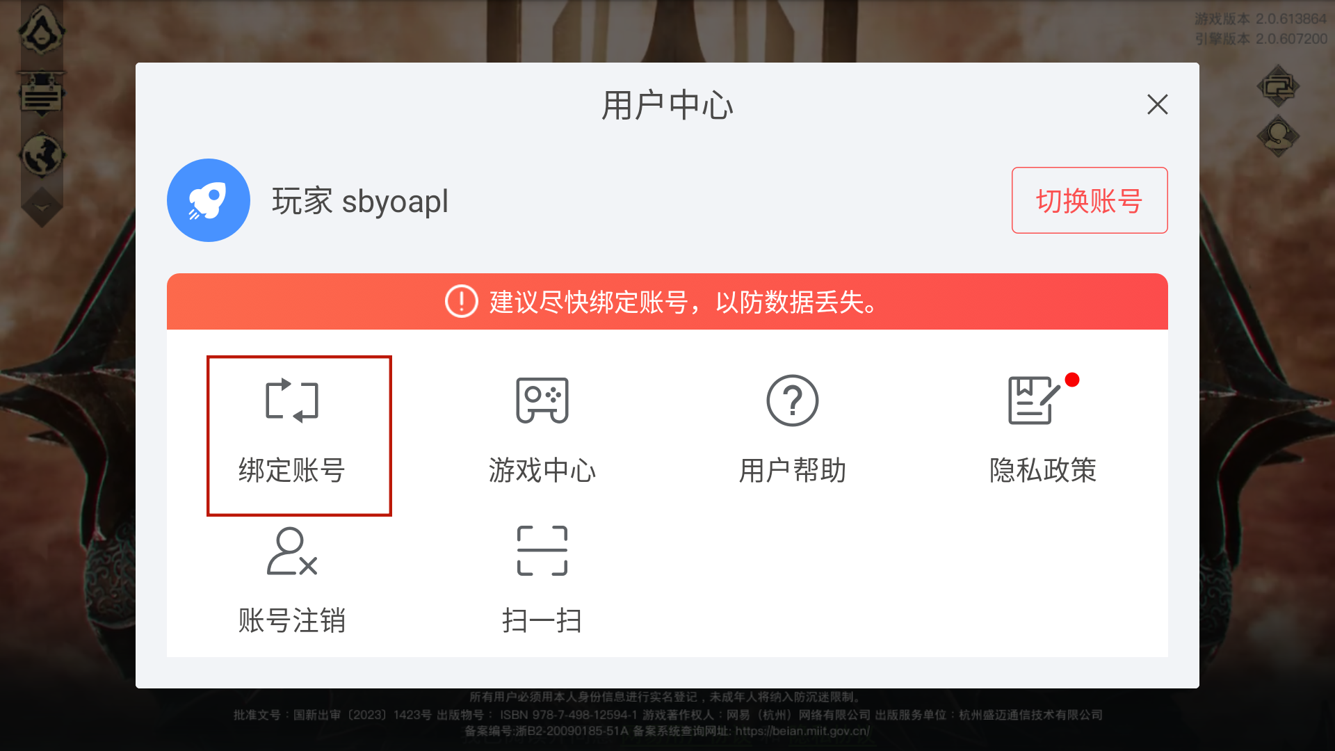 2、建议在游玩一段时间后进行数据上的保存,绑定相关的账号即可。