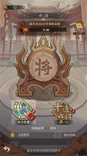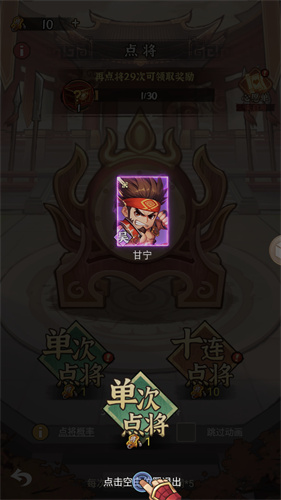 1、游戏内的武将都将根据点兵的方式进行获取。