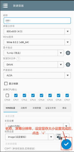 5、在所有配置设置完毕后点击√号即可完成容器的搭建。