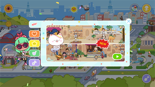 米加小镇世界拥有着最为自由的游戏空间,没有任何拘束的生活在这个世界中享受不同区域的乐趣,随心所欲的进入到咖啡馆、理发店、奶茶店等不同的建筑中体验人生。通过玩家的点击就能够与不同的物体或建筑产生交互,在米加小镇上所有的建筑物都均匀的分布在不同区域内,根据今天的心情或想法来挑战喜欢的店铺经营,所有的物品与道具都可以自由移动,打造出专属于玩家的小店铺进行体验。随着游戏版本的更新将会带来更多的全新建筑物进行游玩,丰富的时装搭配你的角色带来全新形象体验。