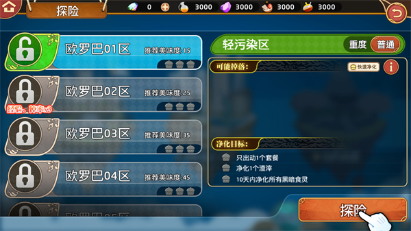 2、作为游戏内最专业的大厨,对待每一个食材都需要非常的耐心与细心,将被黑暗侵蚀的食材拯救回来。