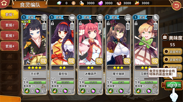 3、挑选好以后还需要进入到装盘阶段,来激活不同食灵之间的特殊羁绊。