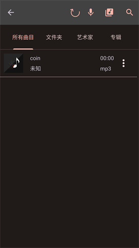 2、随意的点击进入某个功能内,此时将会自动检索手机内存中的音乐文件。