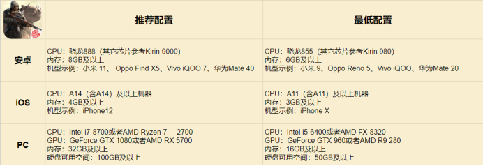 具体的配置相关要求如下图所示: