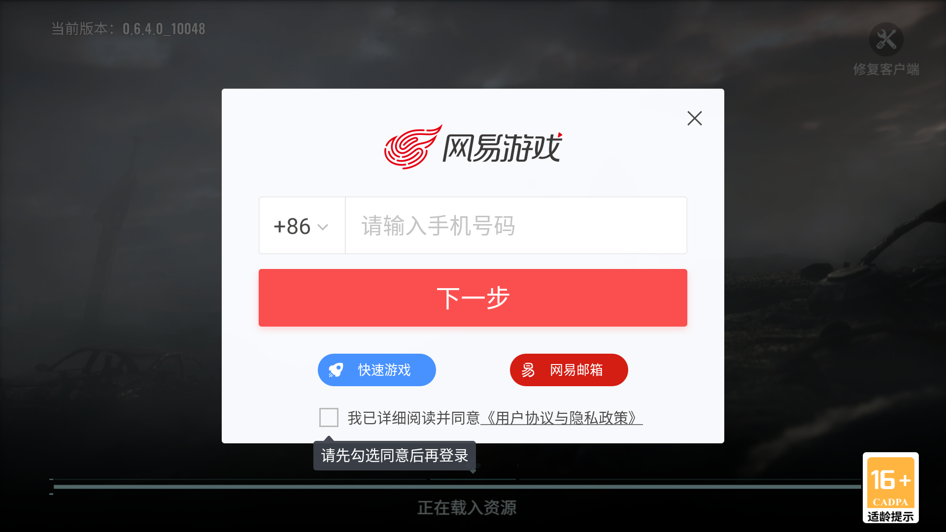 1、目前体验服的资格登入游戏后即可自动获取,如下图所示输入玩家的相关账号后即可体验。