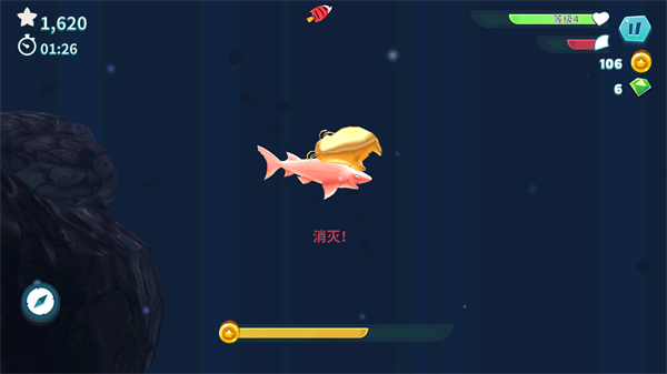 3、建议玩家在吞噬足够的鱼类获取更大体型后再进入深海内哦。