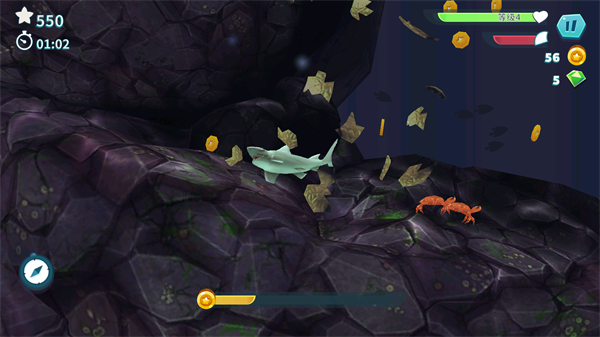 在神秘的海洋世界中拥有着众多的鱼类生活在其中,他们秉承着弱肉强食的自然法则形成了较为和谐的生存环境,而一只鲨鱼的闯入让整个海洋变得热闹非凡起来,这就是今天小编带来的—饥饿鲨进化手游。玩家将操控一条来路不明的鲨鱼在海洋内肆意的探索,所有比你体积小的鱼类都可以进行快速的吞噬,通过能量的转换来提升鲨鱼的等级解锁全新能力,并且海洋的探索可以持续的往下进行,随着深度的增加其鱼类的体积将会快速增长,并且体积相当的鱼类也将追逐你来进行厮杀,在黑暗的海洋环境内生存下来吧。