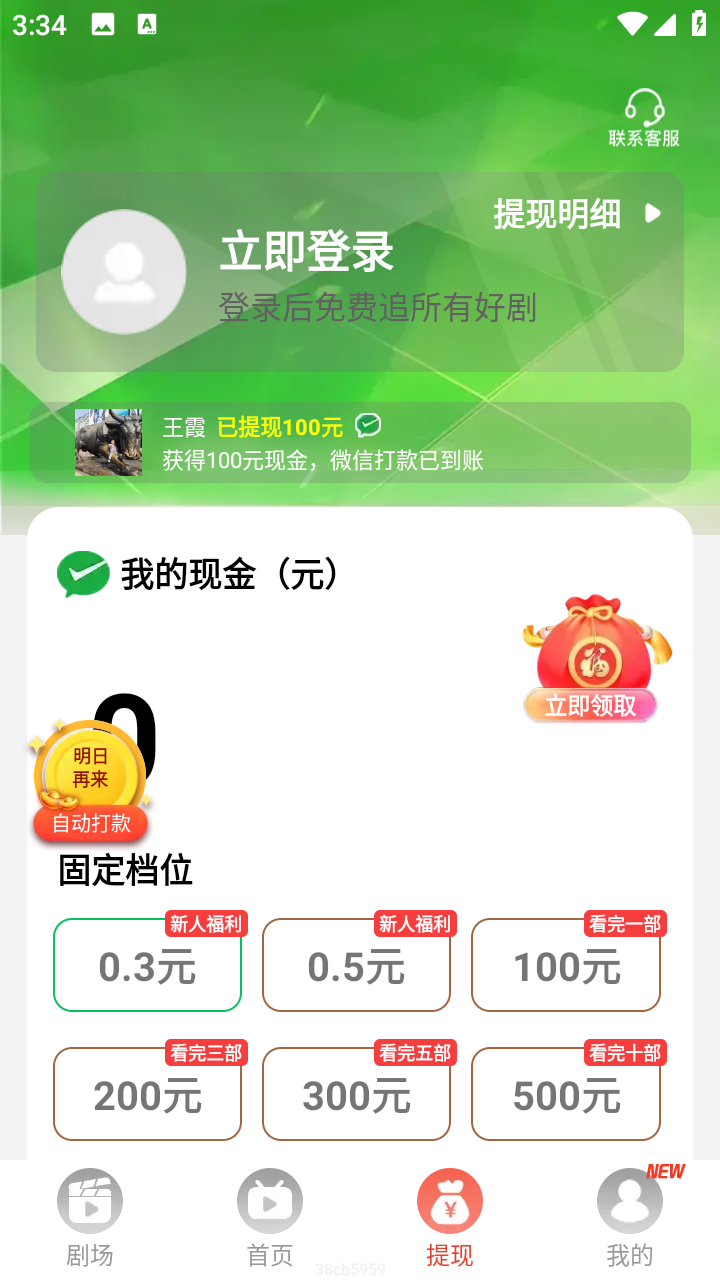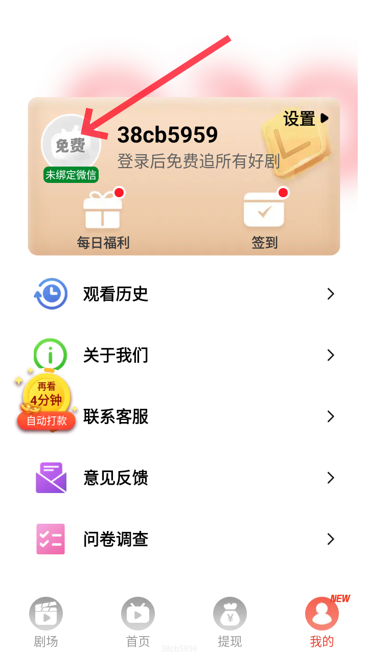 3、提现板块中也可以进行微信登录,然后通过刷剧来获得收益,直接去微信提现,还能查看提现明细。
