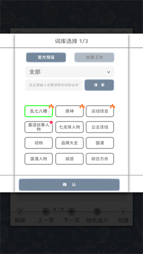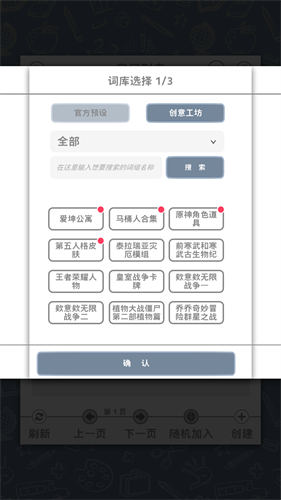 2、此时词库是最为重要的选择之一,可以从创意工坊与游戏自带的词库中自由选择。